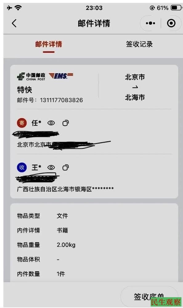 任重表示,自己给妻子王聪寄了圣经也寄了很多本符合看守所要求的书籍,之前在取妻子的逮捕通知书时,相关办案人员告知,家人可以给王聪邮寄信件,书籍,只要是合法出版未拆封的,家人都是按照相关要求邮寄的,但直到上次会见,王聪都没有收到任何一本。连家人邮寄的王聪和孩子的照片,她也没有收到!