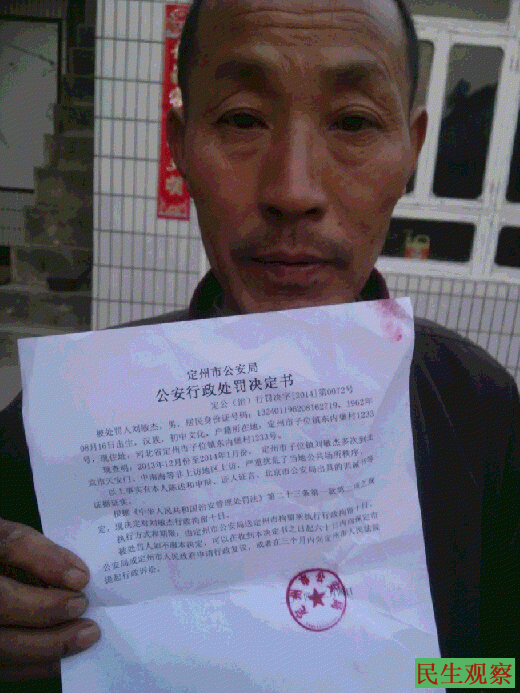 另外,河北定州访民刘敏杰3月4日当天在北京坐102路车到全国人大信访局上访,下车后被北京市公安强行拉住,随后被带至北京天桥派出所。在这里登记后刘敏杰被送到久敬庄。不久,刘敏杰所属的定州子位镇镇长张永望等四人来到北京强行将刘敏杰带回。到定州后,刘敏杰被行政拘留十日。据悉,刘敏杰为儿上访已拘留进监八回,前不久刚因围观庆丰包子铺被刑拘。