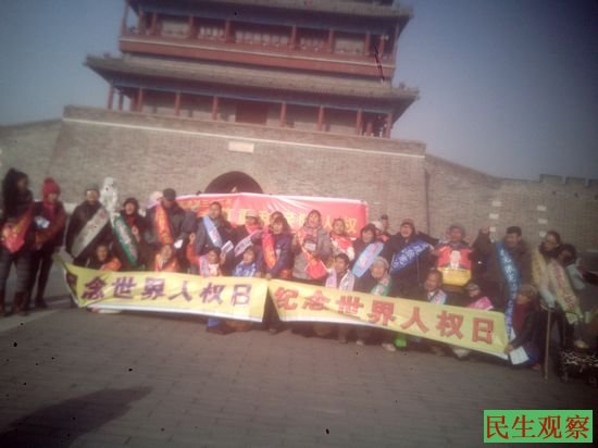 民生观察工作室2014-12-19消息:黑龙江省海伦市访民孙波国际人权日(12月10日)和访民歌唱团成员一起到联合国开发署要求国际社会督促中国政府尊重、保障人权、兑现依宪治国的承诺,多人被北京警方带走。他们趁机逃离后,又到位于北京市西城区的永定门城楼处拉起横幅纪念世界人权日,孙波被警方当场抓走以寻衅滋事罪刑拘。