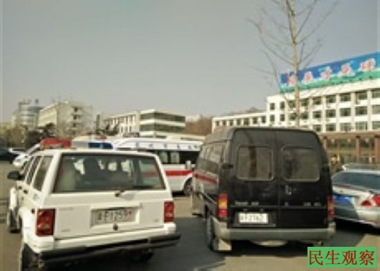 今天上午,定州市政府门前却停满了警车和特警车辆,还有一辆120急救车,只有极少数农民工逗留在市政府门前。