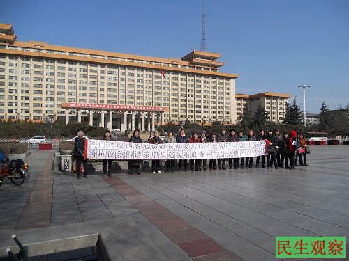 陕西二十余访民打横幅抗议政府冻结冤假错案的处理决定