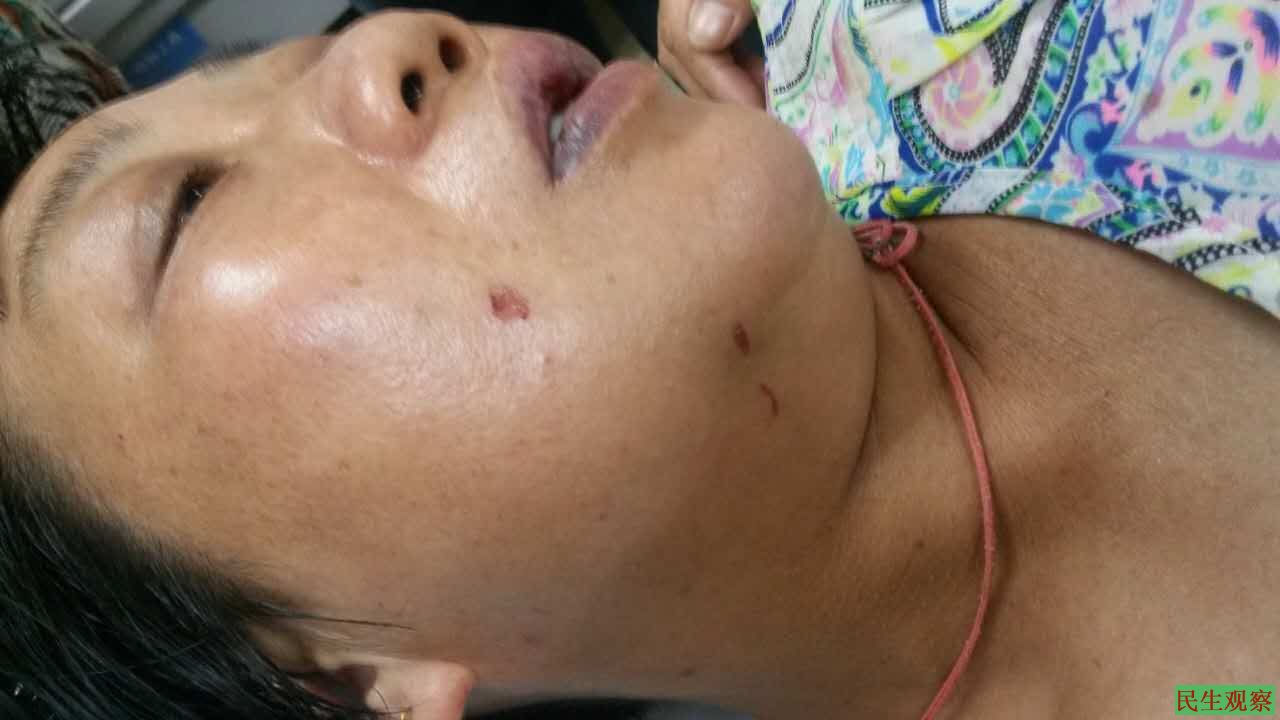 民生观察工作室2016/7/27消息:广东佛山市顺德区杏坛镇访民胡铭添一家3口人进京旅游,被不明身份人员打伤拉回原籍,现胡铭添下落不明,其妻被打伤住院。