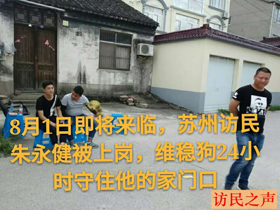 [访民之声2017/8/1消息] 苏州访民朱永健被政府雇佣人员限制自由20余天,至今没有自由。湖北襄阳何斌、徐彩虹夫妻今日被押久敬庄。