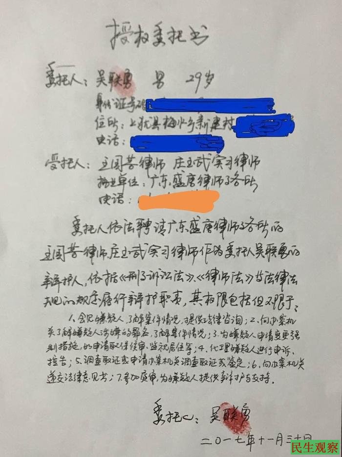 次日(11月30日)早上,一夜未眠的吴联勇被吓得四处躲藏。之后,他联系到好友王国芳律师,并征求了王律师的建议,最后,在王律师的劝说下,吴联勇才匆匆签下了刑事辩护委托书,并开始做最坏的打算(刑拘、判刑)。上午,在王律师的陪同下,吴联勇走进了上犹县公安局派出所接受传唤。与此同时,当地的村民们也得知了此事,大家深感气愤,纷纷自发的前往派出所表达声援,大家在派出所门前气氛的质问警方:“上犹县县委书记赖晓岚就批评不得嘛?他就受不了一丁点批评吗?这样的书记,能是百姓心中的好书记吗?”