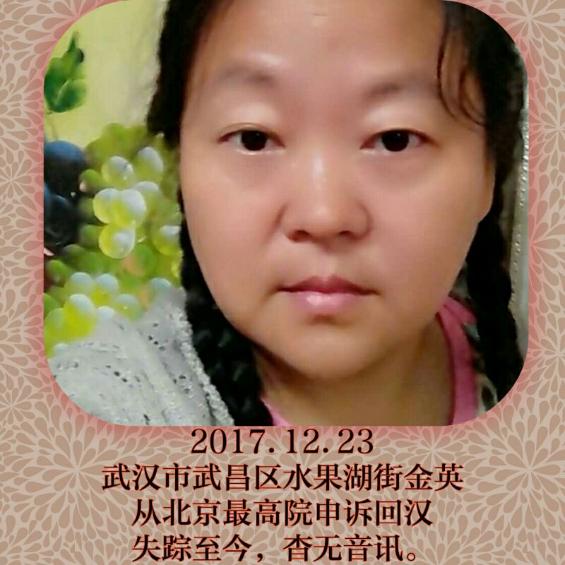 据武汉硚口区访民曾宪武介绍,武汉市江岸区访民邹桂兰,因“两会”期间进京上访,于2018年3月2日被北京警方抓走,随后被武汉维稳人员强行押送回武汉市后失踪,她的家人也联系不到她;还有,武汉市建荣村访民周玉英、李运香、曹金姣三人,他们在3月1日早晨到北京市国家信访局信访后,在天安门广场刷身份证时被辖区警察抓走,至今音讯全无;而武汉市东西湖维权人士任春华、胡秋芝,昨天发出消息称她们已经被关进了黑监狱稳控,并禁止她们出门上访;武汉市化工区维权人邬盛祥,于3月1日在北京485公交车站候车之时,遭十几名不名身份人员绑架,现下落不明;武汉市访民钱庆文,也由于近日在北京上访举报,现已失联。