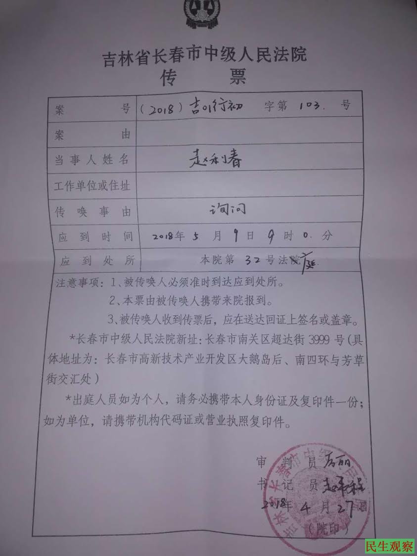 【民生观察2018年5月9日消息】本网获悉,吉林维权人士赵利春(女),因医疗致残事故上访多年。上访后,问题非但没有解决,反而遭来了维稳部门的非法稳控,现在她已经被堵在家中禁止出门。