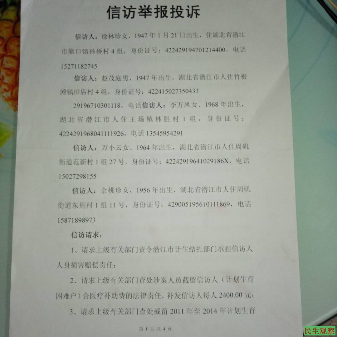 据悉,在潜江市政府挂名的银行上访的三位黄行芝,潘向荣、伍立娟、廖梅枝夫妻,还有失地农民等访民有16位,政府明确告知他们不能进入市政府大院,期中包括计划生育上访的。