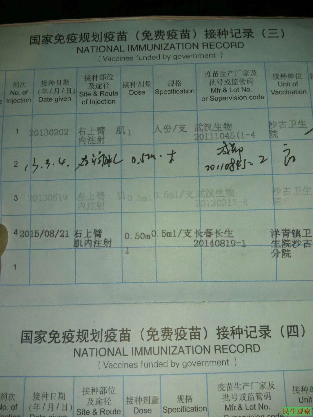 【民生观察2018年7月25日消息】最近令全国不少父母忧心忡忡的”问题疫苗”正在持续发酵,家有儿童的父母们纷纷拿出孩子的疫苗接种卡片进行查看,其中长春长生生物科技有限公司以及武汉生物科技有限公司的多个批次产品被证实存在注射风险,恐慌气氛充斥整个网络。