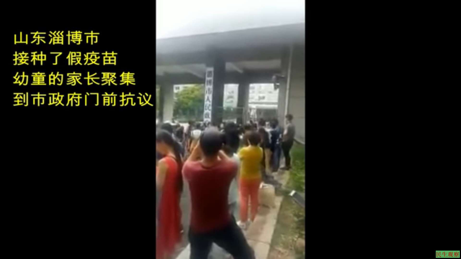 据山东网民@dyrcqybq称“7月24日,问题疫苗事件进展,又遇到政府部门撒谎,家长们愤怒了!山东淄博市政府睁着眼睛撒谎!接种了问题疫苗的幼童的家长们彻底被激怒了!已被迫聚集到市政府门前抗议!”