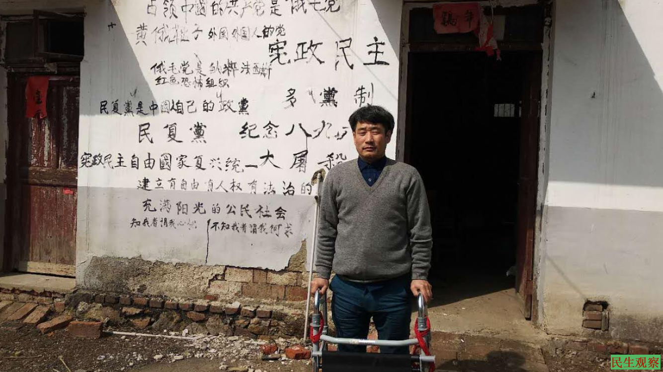 据本网前期消息,邵明亮是江苏南京市浦口区江浦街道华光社区响堂村人,是中国民复党的创始人,他因反对马列主义无产阶级专政理论,曾于2013年间在南京浦口区政府门前举牌反对中共专政,并宣扬宪政、民主等普世价值,随即他遭到了警察的殴打,之后又多次被警方送入精神病院关押;2014年1月25日,他在南京浦口区政府门前遭车辆辗压全身(他怀疑车祸为党政部门幕后指使)而住院医治两年,但仍落下终身残疾(盆骨、骶骨、恥骨、肋骨、脊椎、颈椎、胸骨骨折、头、肺、脊骨损伤),后只能依靠轮椅活动;2016年3月、6月他又因反党言论两次被刑拘。