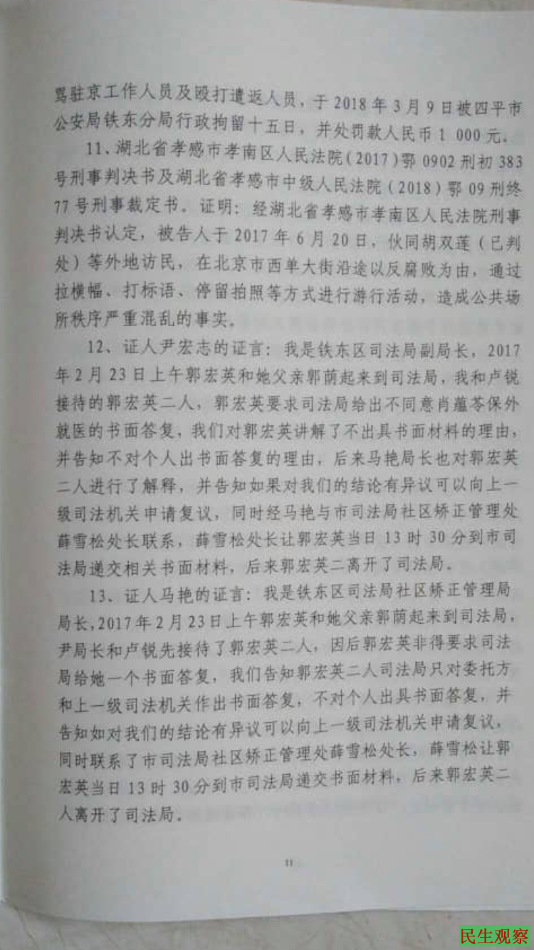 吉林四平公民郭宏英女士涉嫌寻衅滋事、妨害公务案一审,将于2019年4月18日在四平市铁东区法院开庭。郭宏英因对其母肖蕴芩,其兄郭洪伟被重判不服,坚持申诉,继其母兄系狱,目前仅八十多岁父亲孑然在外,苦苦守候。一门三被诉,此案堪称东北乃至全国范围内在诉的对访民进行打压的典型案例。