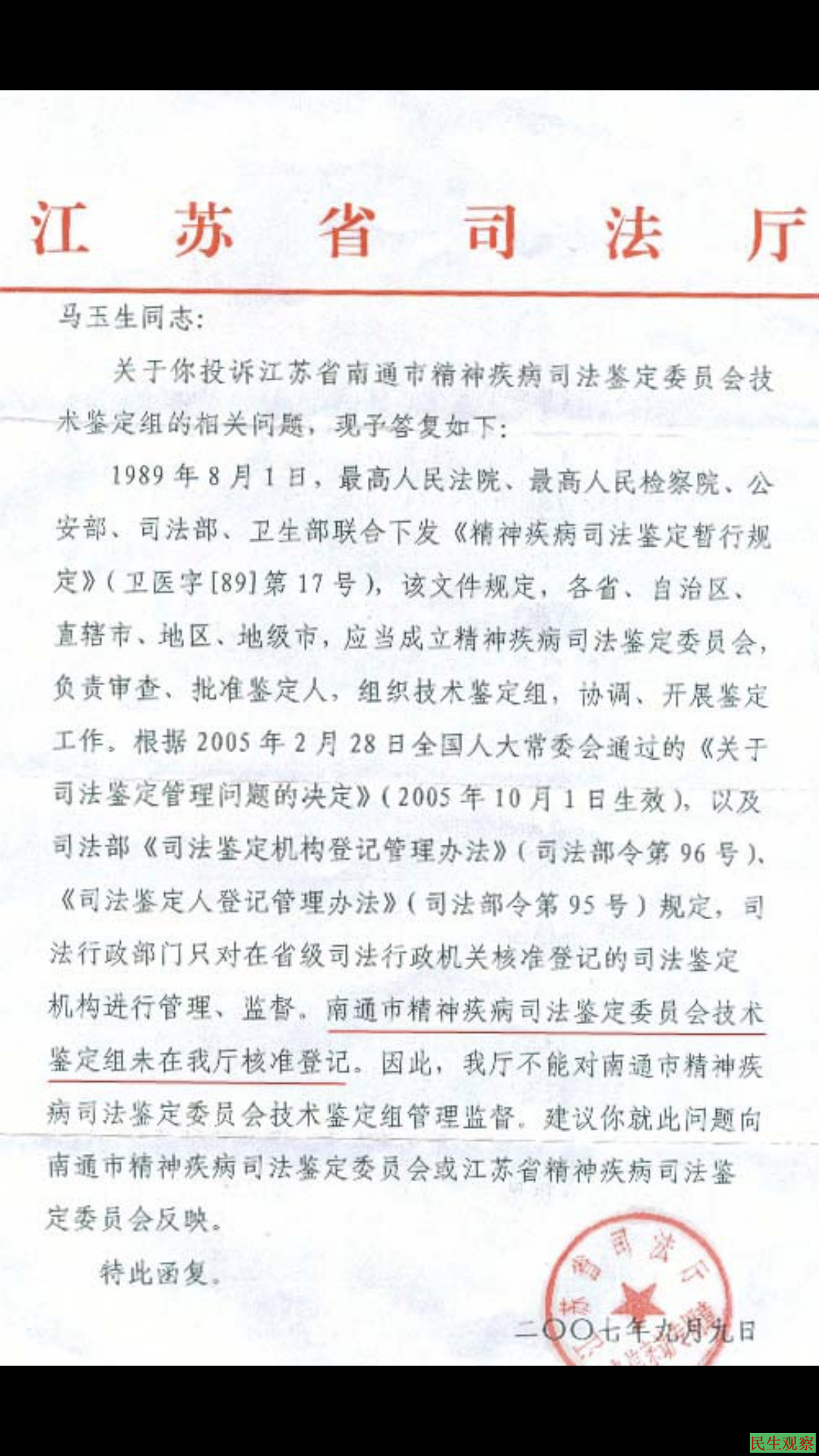 其实,早在我遭到打击报复之前,如皋市信访局早就预谋对我采取报复措施。我举报违法乱收费,干部说我有神经病。在2000年6月1日,如皋市信访局让我村会计张成龙把我从家里给骗出去,然后由如皋市公安局政保大队公安人员魏保金,下原派出所领导陈彬及下原镇主管政法的镇党委副书记毛建国等有关部门干部人员,曾用警车将我送到江苏省镇江市司法鉴定机构进行过精神疾病司法鉴定,经三名精神病鉴定专家鉴定,鉴定结果是一切正常,司法鉴定结果证明我根本就没有精神病。但有关部门却一直拒绝把这份司法鉴定报告书给我。