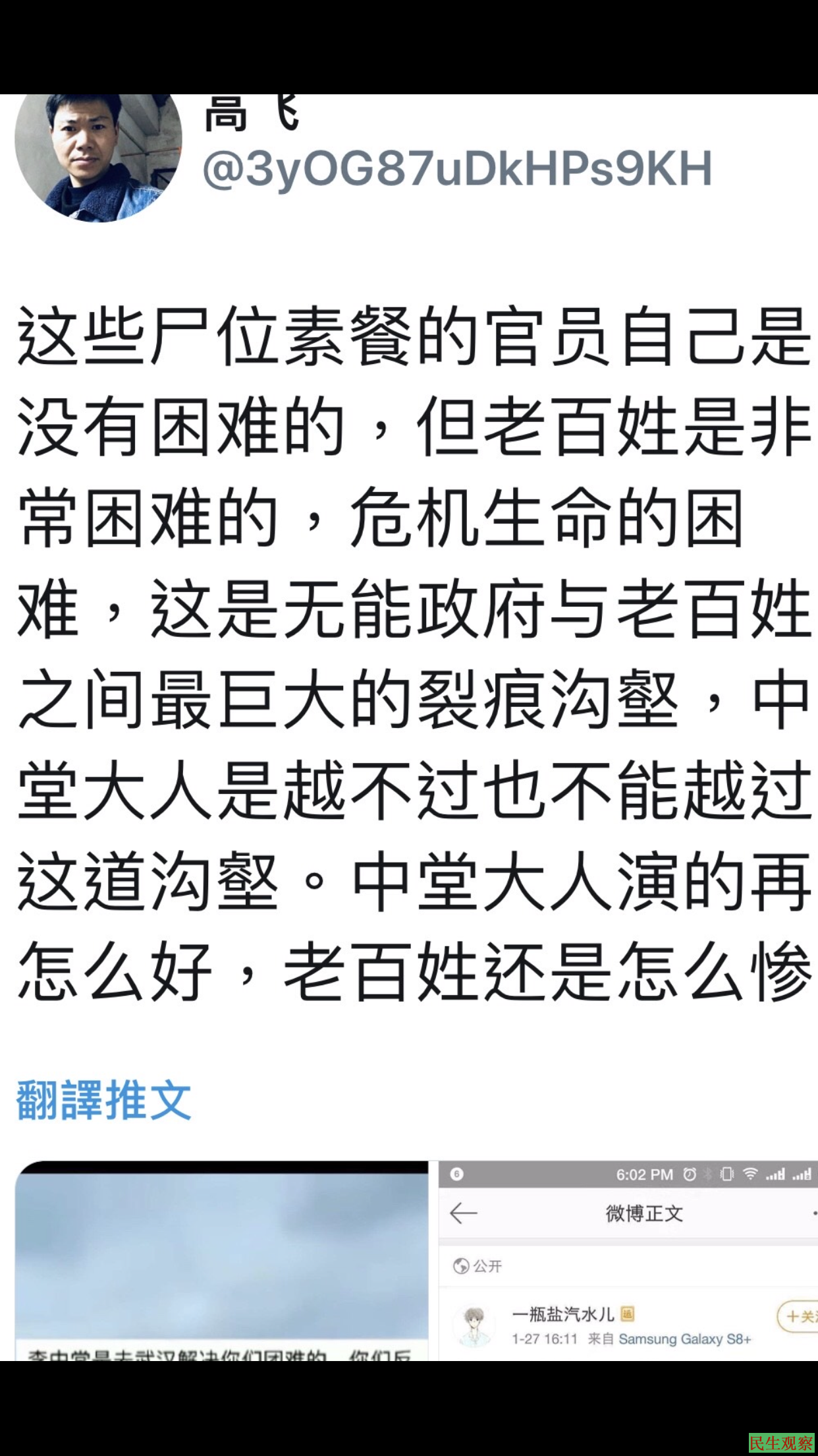 分析人士认为,从高飞的推文来看,拘留可能与抨击当局处置不力等言论有关,而其中一条推文更提到了前几日正在武汉视察的李克强总理,所以难以排除更坏的结果。