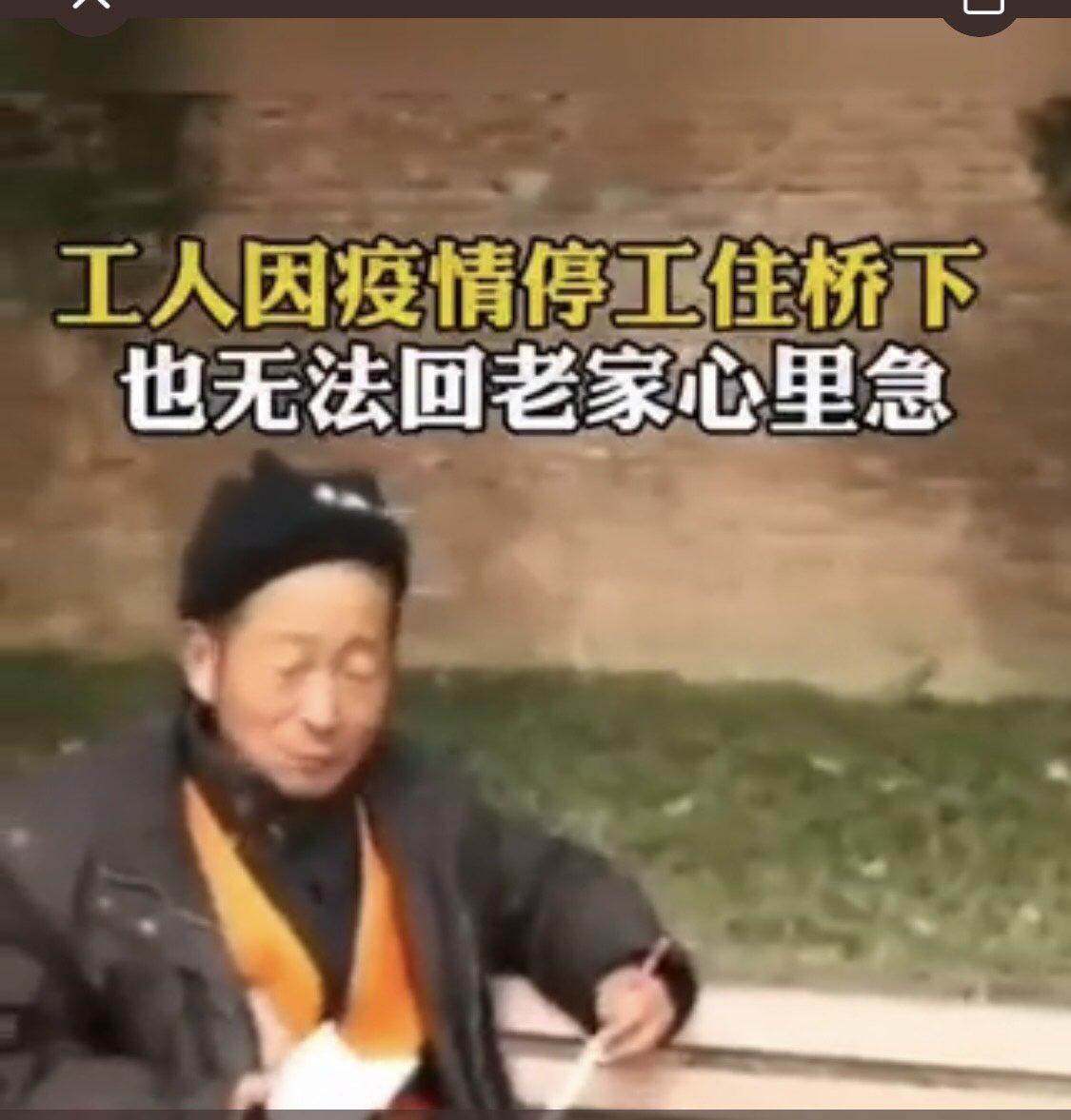 1月15日,一段视频显示,河南郑州一位年老的工人因疫情停工住桥下,也无法回老家心里急。