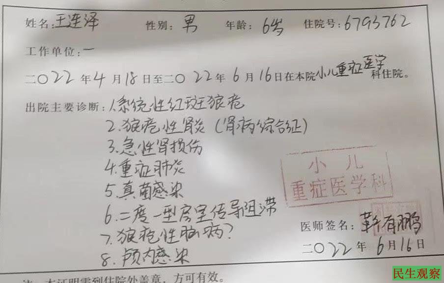 2、2022年7月18日微博网友“不要你的承诺”:三个多月了,还是没有任何单位来回应疫苗的问题,我孩子还在北京治疗,既然你们不作为,那我也就直接去国家卫健委申诉去了,卫健委不管,我就去中央新闻联播那去。我六岁的孩子因为新冠疫苗,出现的系统性红斑狼疮,多个脏器受损,花费50万,后续费用还要很多,也不知道孩子这病能挺到多久,既然让我们家破人亡,你们也别想好过!