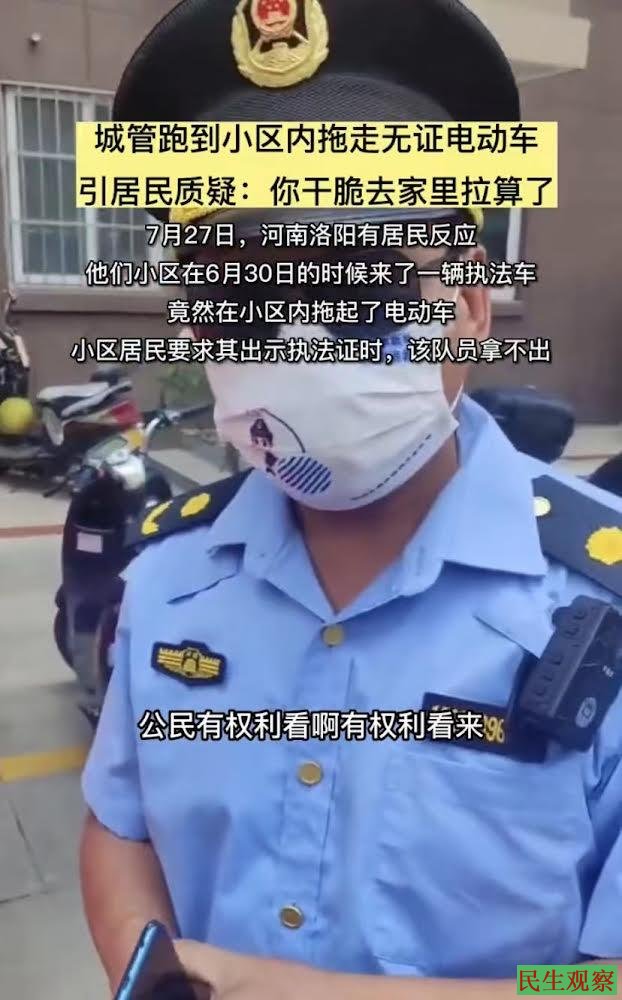 【民生观察2022年8月3日消息】本网获悉,8月2日,河南洛阳市十余位居民,集体来到市区城管局索要自己被强制拖走的电动车,但是城管部门却要求这些居民缴纳数额不等“罚款”后才能取车。