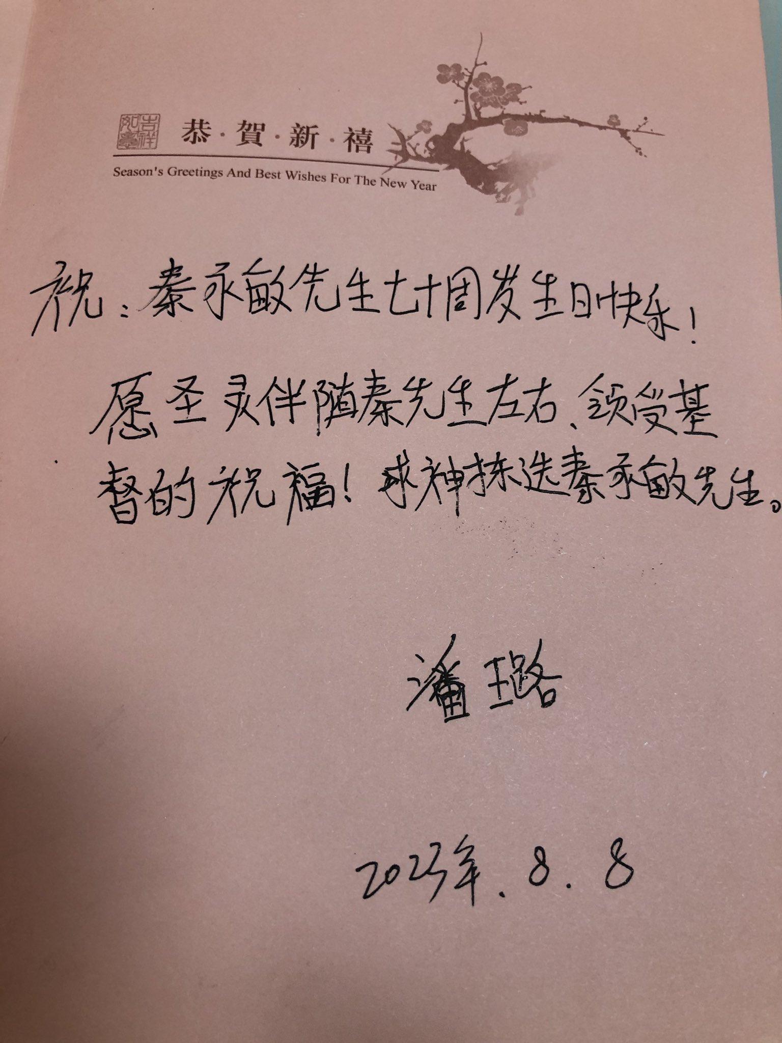 再次祝秦永敏先生70岁生日快乐!祝他身体健康!祝他早日恢复自由与家人团聚。