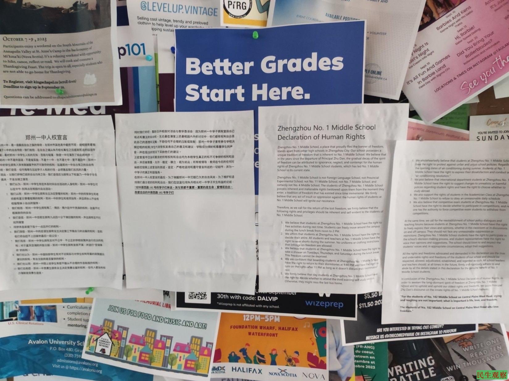 随着上述事件的进一步发酵,网传在郑州一中张贴宣言的是一名已经就读于北大的学生,目前在返回学校的高铁上遭到了追查。而在海外各校的原郑州一中学子纷纷在自己学校张贴《宣言》声援学弟学妹们。