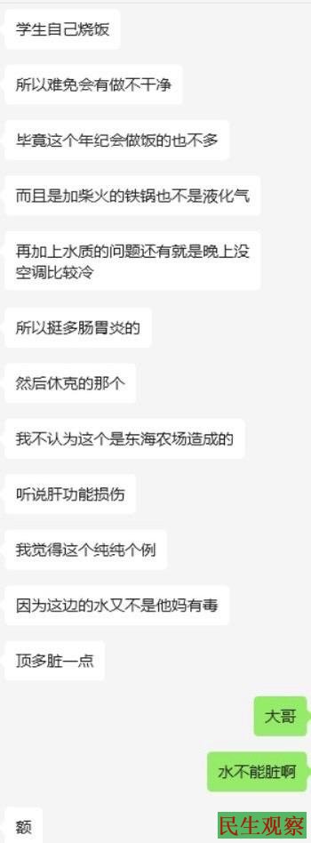 但是本次卫生事件至今未获得来自学农基地、学校或其他任何官方渠道的答复与解释,没有来自它们的任何消息,也更没有来自它们给予的任何补偿。