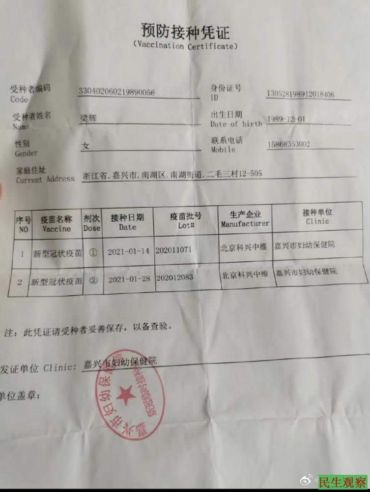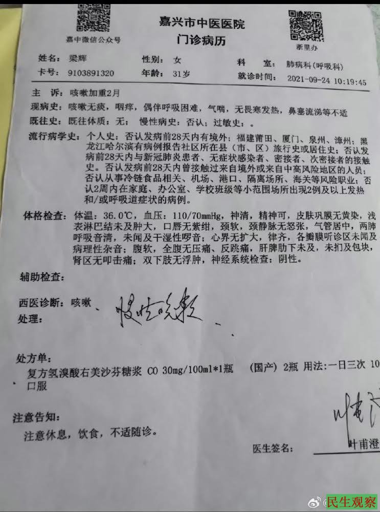【民生观察2024年9月25日消息】2024年9月24日,前浙江嘉兴市妇幼保健院护士梁辉发文控诉,三年前自己被强制注射了新冠疫苗,后引发严重呼吸道过敏反应,之后病情逐渐加重,导致无法治愈的情况。现如今的梁辉处于身体极度痛苦,精神已经崩溃,积蓄已经花光,生活无以为继的恶劣状态。