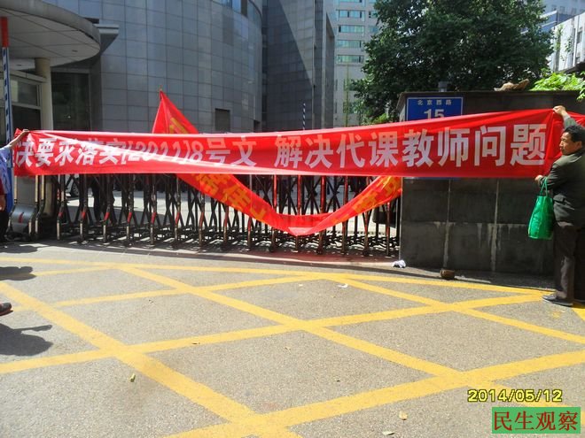 民生观察工作室2014-5-13消息:昨天和今天,江苏省一批原民办教师到省政府多个部门上访请愿,到今天下午老师们坚持在南京。