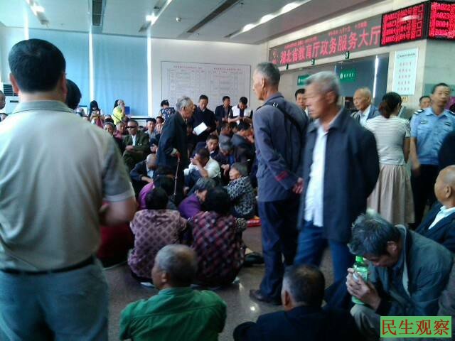 据正在现场的陈老师告诉本网,上午九点教育厅前已聚集了数百乃至近千人,咸宁、黄冈、、荆门、荆州、孝感、襄阳、武汉等县市都有民办代课教师在场,当时还有人员正赶往这里。到场后,部分老师进入教育厅大厅内,整个大厅被老师们坐满了,而在教育厅外,还有不少老师聚集。湖北汉川的一位老师则说,她已发现现场有老师带了农药过来。