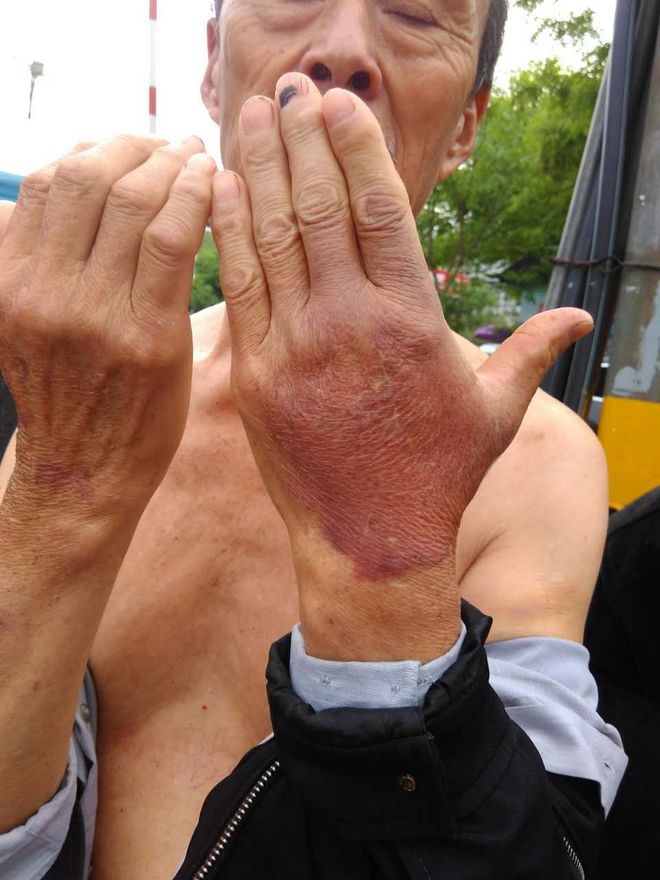 被打伤的湖北万人孝老师
