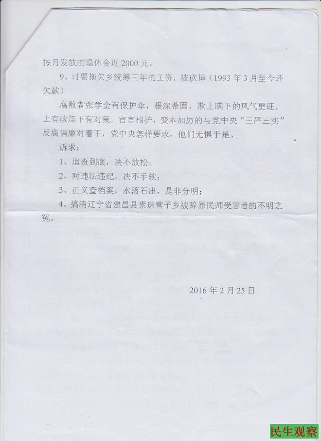 湖北汉川民师王秋发诉北京上访遭殴打致伤
