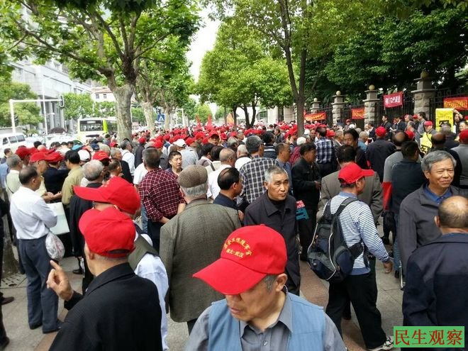民生观察工作室2014-5-15消息:今天上午,湖北省大批企业军转干部再次来到湖北省政府上访请愿。据现场人士告诉本工作室,今天到场的企业军转干部主要来自武汉市各个区,另外宜昌、孝感、襄阳、黄石、荆门等县市也有少部分军转干部到场。据观察,湖北省政府现场人数达数百人,大家上午要求见省领导,要求落实军转政策。