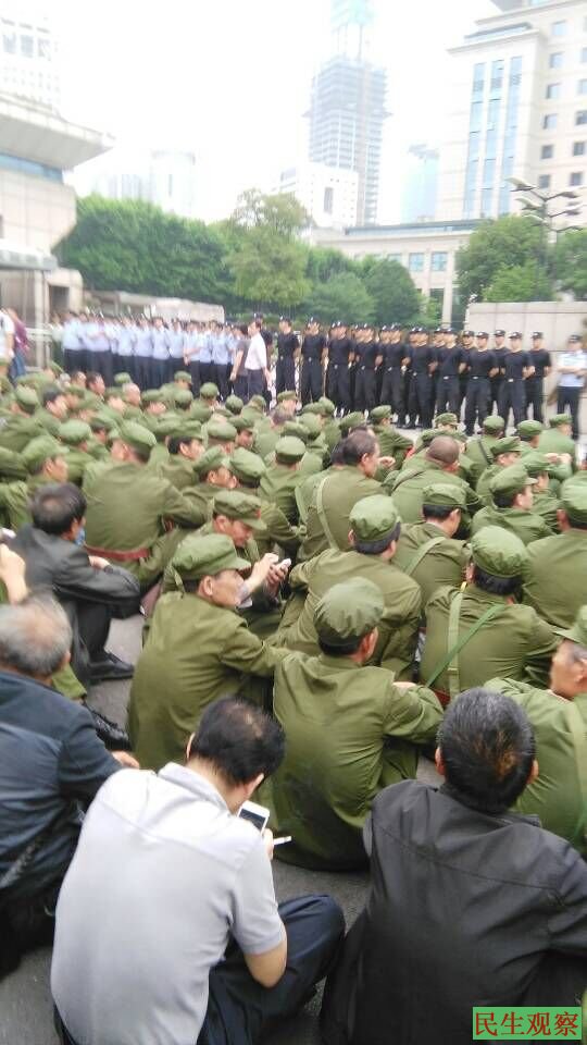 民生观察工作室2015/5/4消息:今天是周一,湖北各地大批参战老兵齐聚湖北省政府前静坐抗议,要求解决他们退伍待遇等问题。