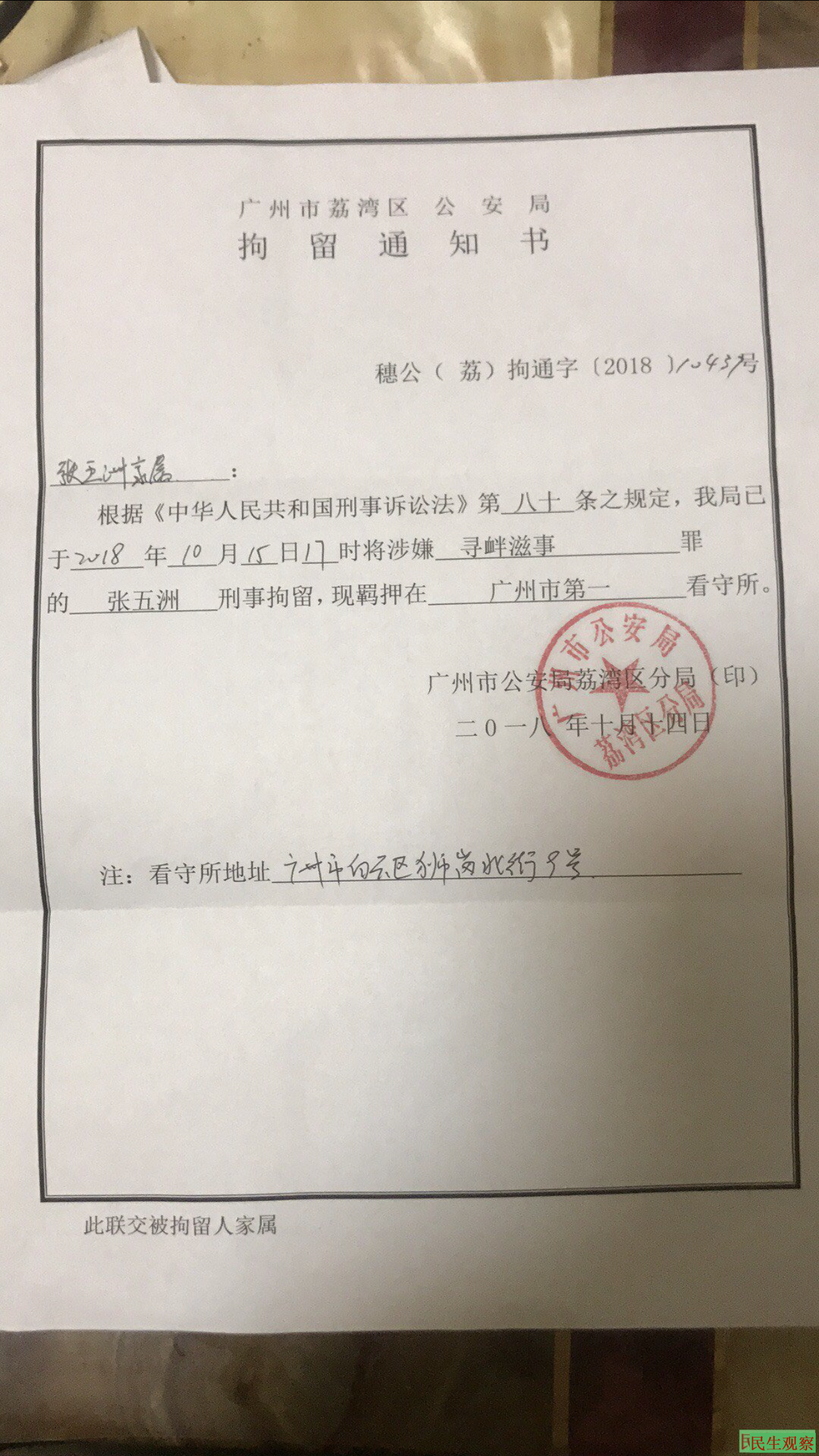 律师在得知案件已遭移送法院起诉的消息后随即连夜赶到广州。于周三26日上午去到荔湾区法院,核实并确认了该案的主办法官以及书记员,并递交了辩护律师的手续材料。