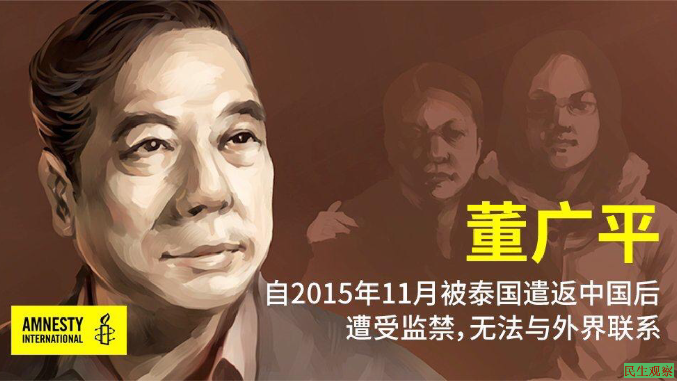 同年11月14日,董广平被重庆当局以涉嫌“偷越国境罪”刑拘;2016年6月,又被重庆当局更换罪名,以涉缣“颠覆国家政权罪”正式逮捕。