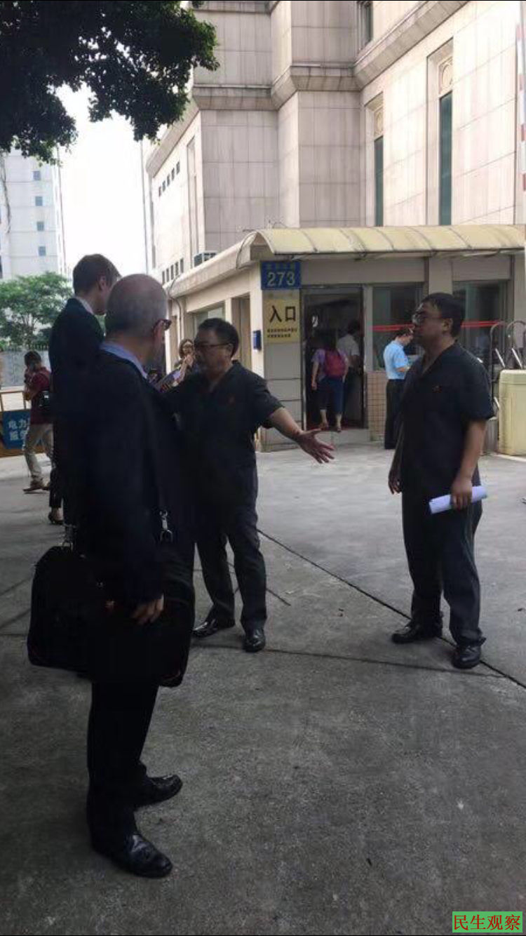 【民生观察2019年8月7日消息】周二(8月6日),广州梁颂基、张五洲(另被控一项“妨碍公务罪”)涉嫌“寻衅滋事罪”一案在广州荔湾区法院公开开庭审理,当局如临大敌控制多人,部分人士被关十几小时。案件庭审从上午九点开始一直到夜晚十点半左右结束,历时超过十二小时,当局仅允许一名家属入内旁听。