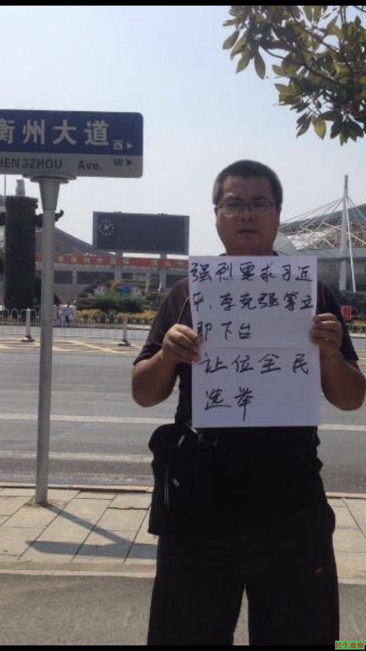 【民生观察2019年9月23日消息】本网获悉,衡阳县维权人士王美余在看守所羁押期间离奇死亡,具体原因和时间不详。王美余曾举牌要求习近平、李克强下台,让位全民选举,举牌照片发布后不久,王美余即被抓捕,罪名是“寻衅滋事罪”,羁押衡阳市看守所。