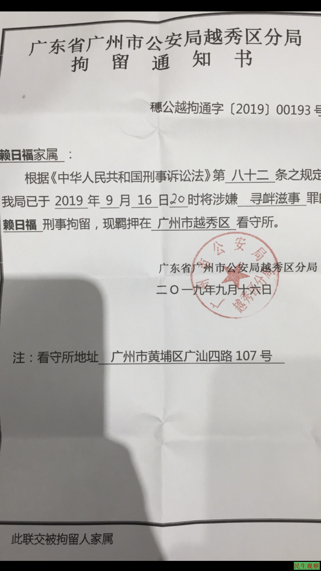 相关报道:广州赖日福疑因支持香港言论被刑拘