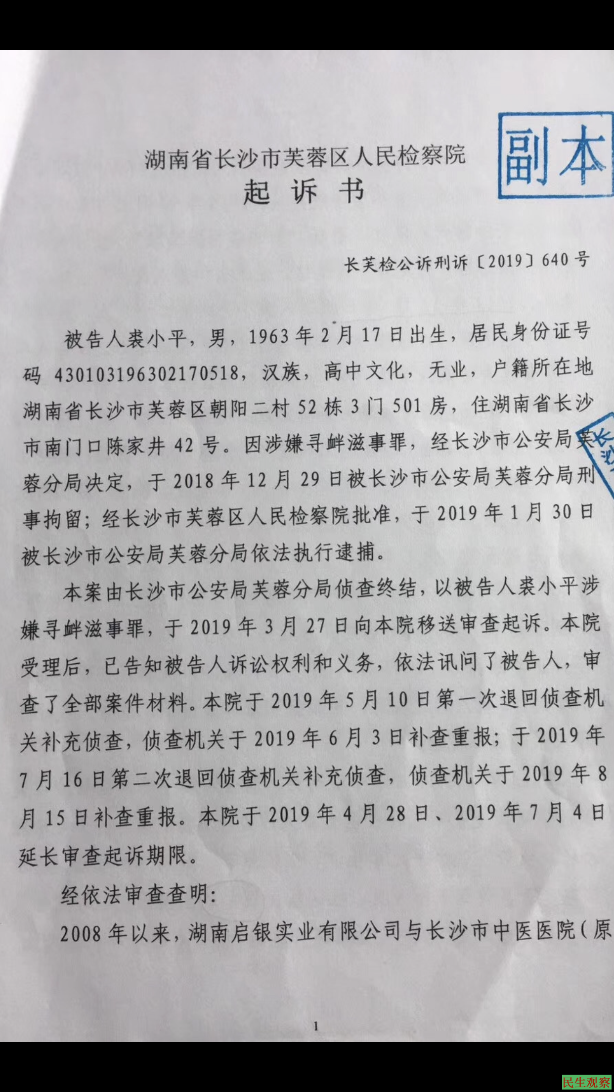 据知情人张先生透露,起诉书中提到的长沙原八医院拆除新华楼事件应属经济纠纷,是原八医院与启银公司的合同纠纷。