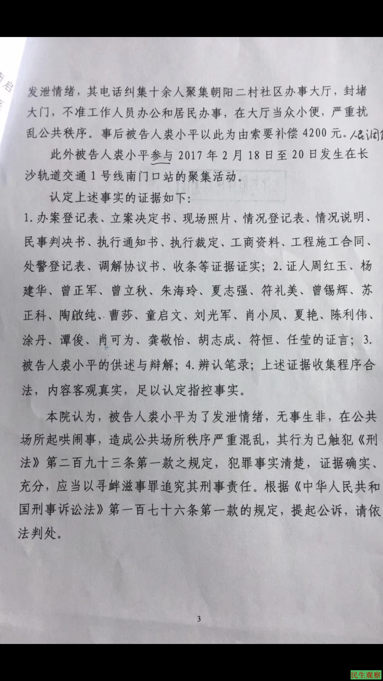 从检察院递交的《起诉书》显示,长沙警方提出的“犯罪行为”分别是2012年及2014年所发生的维权事件,而两起维权事件分别以劝退和赔偿作出过处理,此次作为“犯罪事实”被旧事重提未知何因。