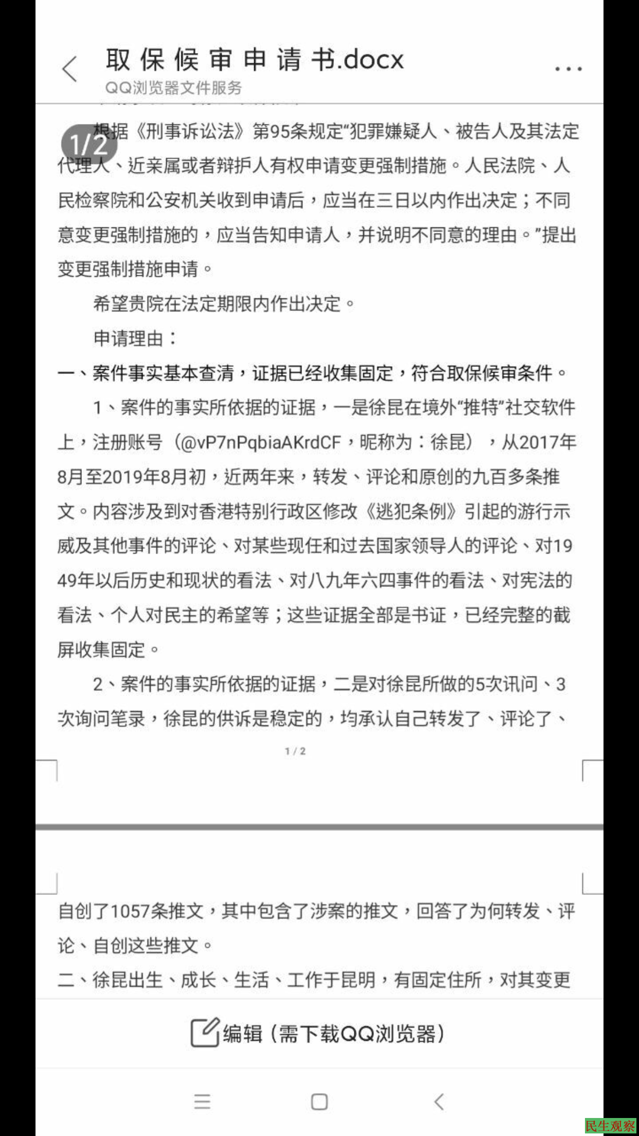 以下是律师给徐昆家人的信息:第二次会见情况