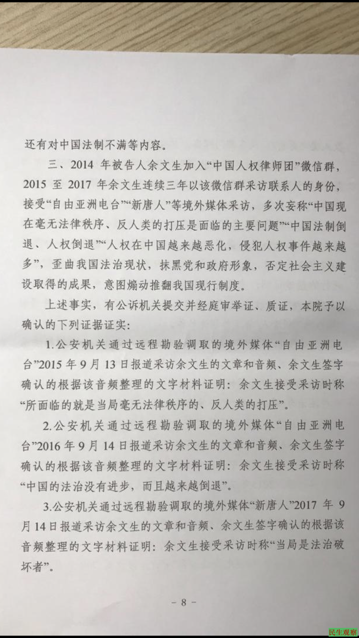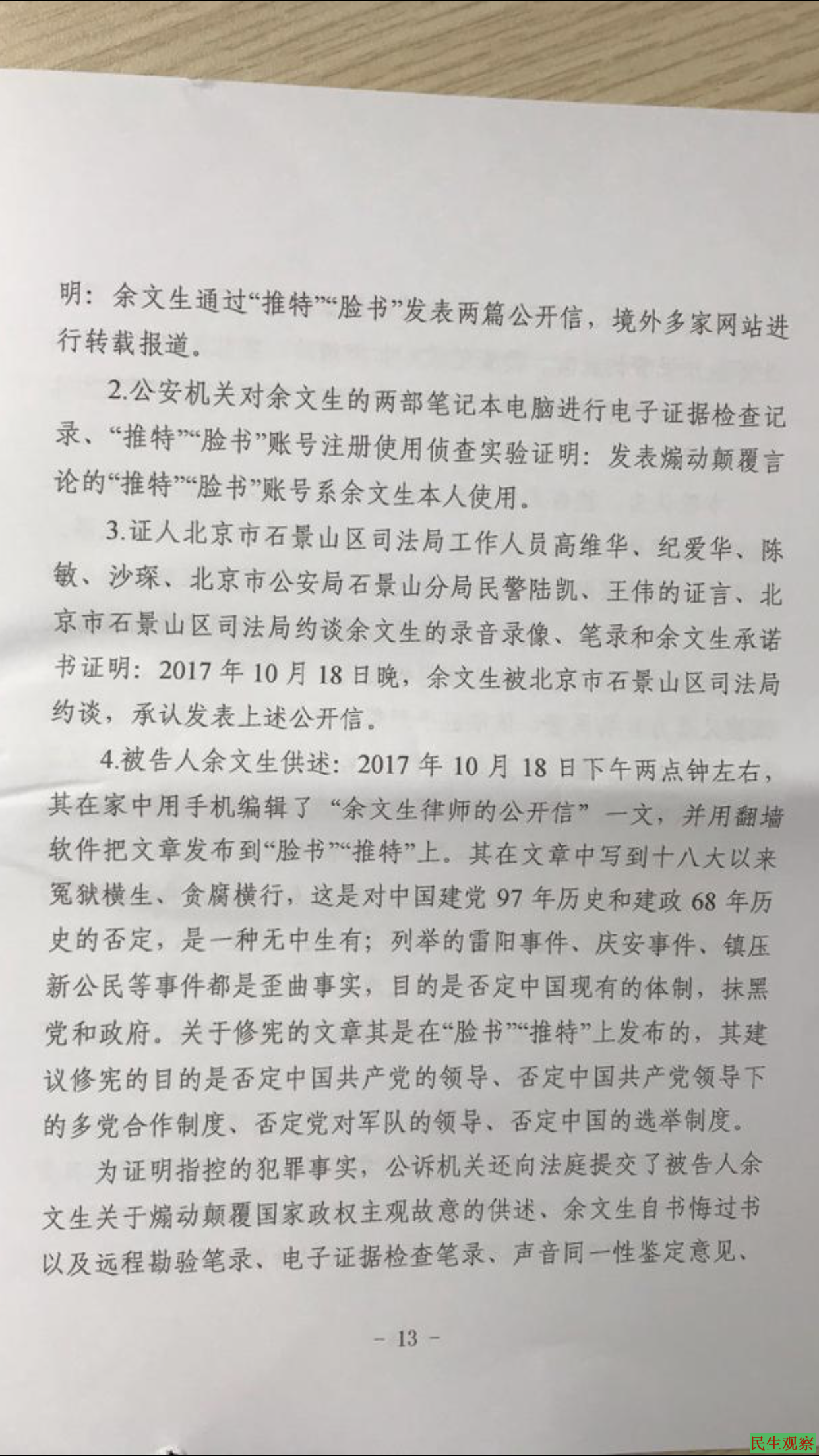余文生“煽动颠覆”一审判决书