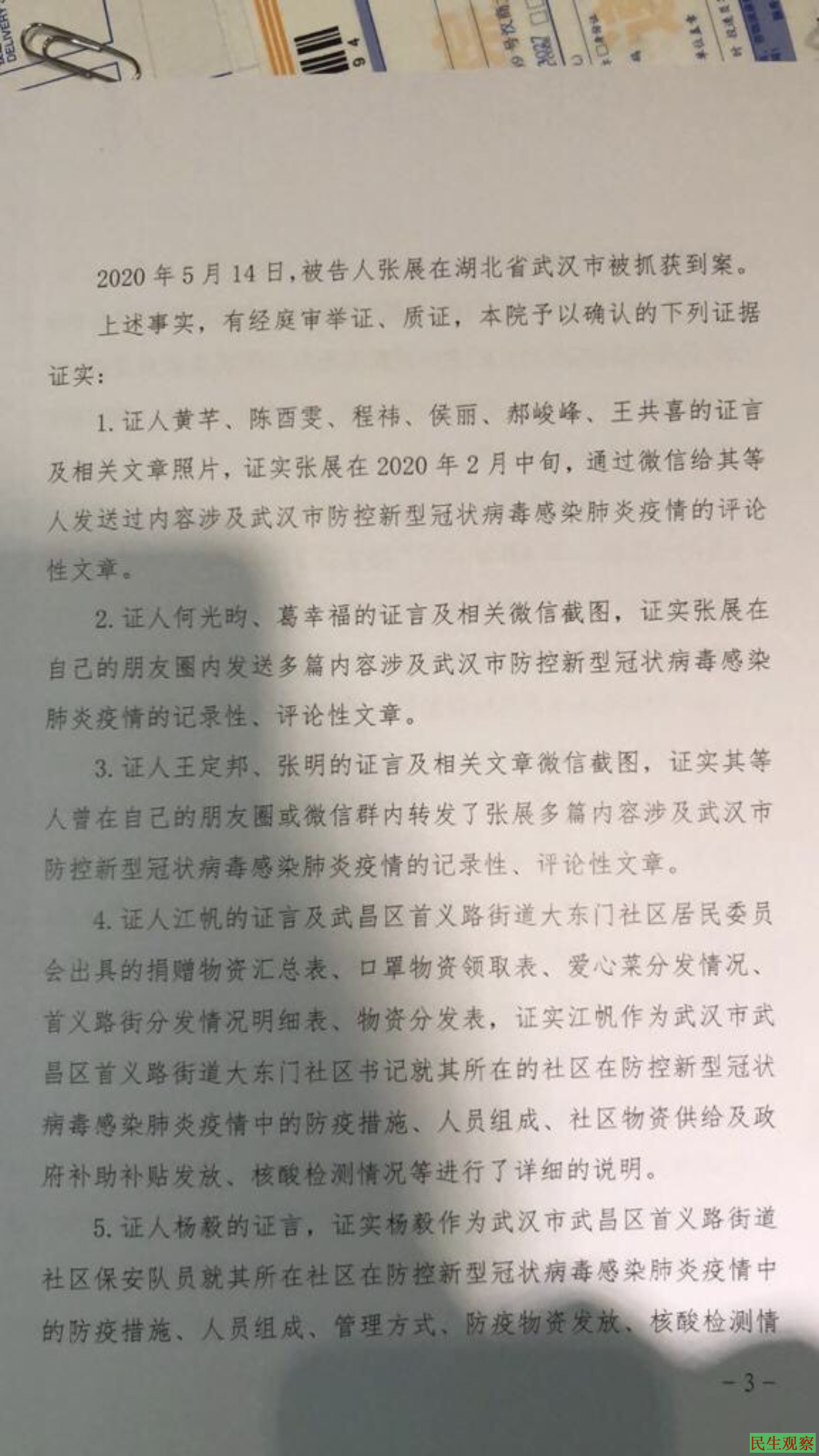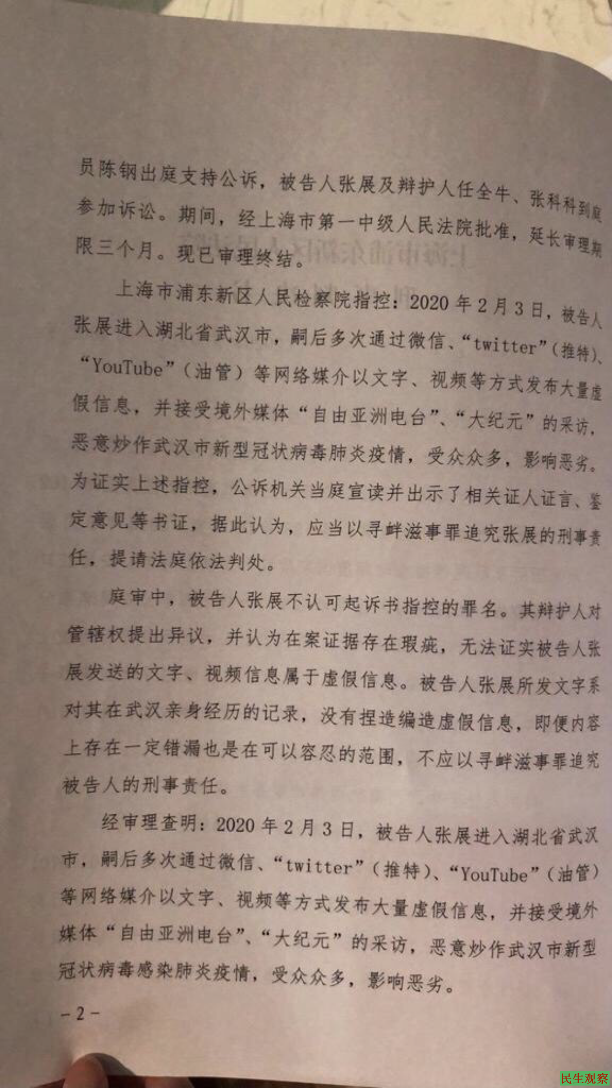 除调查阶段表示公民言论不应该被审查外,其他环节张展基本不再发言。