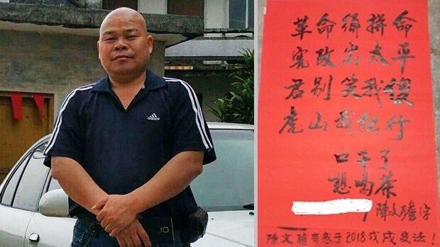 当局指控陈律师的有关反对官员腐败、呼吁建立民主宪政等公开言论、书法作品及行为艺术等,涉及挑战现政权,属“违法行为”。