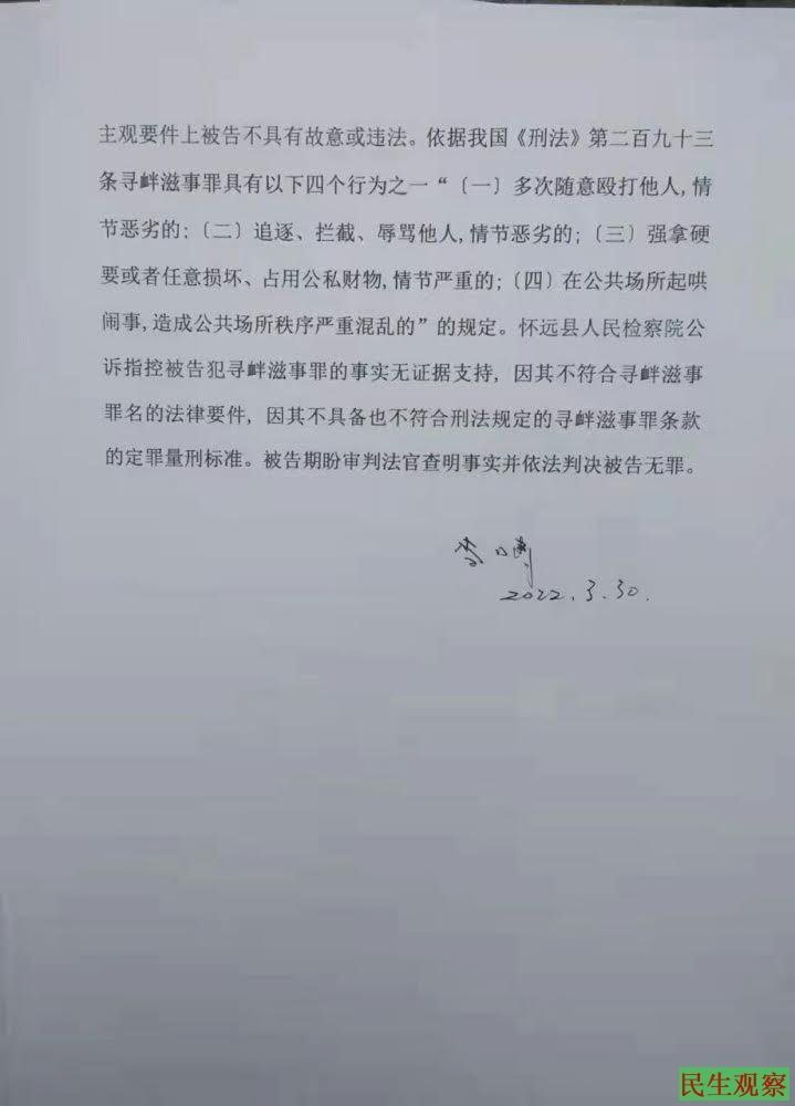 【民生观察2022年4月14日消息】安徽退役老兵李啸涉嫌寻衅滋事罪的开庭,2022年3月30日上午李啸寻衅滋事罪开庭。李啸,身份证号码:340321195806100051。
