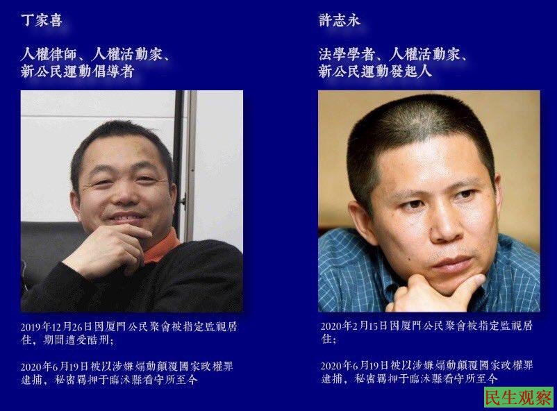 2020年1月,丁家喜和许志永终于在13个月和11个月的秘密羁押之后得以视频会见律师。但律师都被迫签署保密协议,禁止复制案件卷宗,不许与任何人讨论案件细节,不许接受媒体采访,或公开谈论这两个案件。