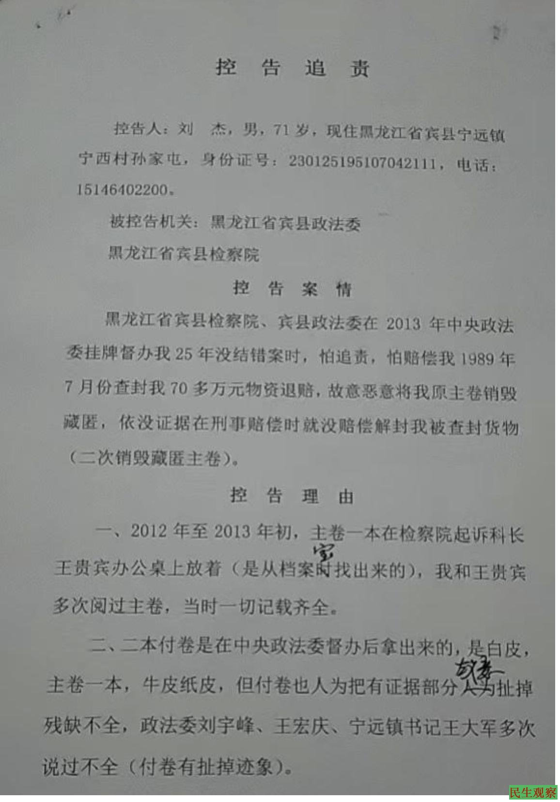 获释后,父亲刘杰不服法院的判决,遂于2022年6月1日向宾县检察院申请国家赔偿,但时至今日司法机关仍推诿扯皮,蛮横欺骗,连一纸书面答复都不给。父亲气不过,到处举报投诉。