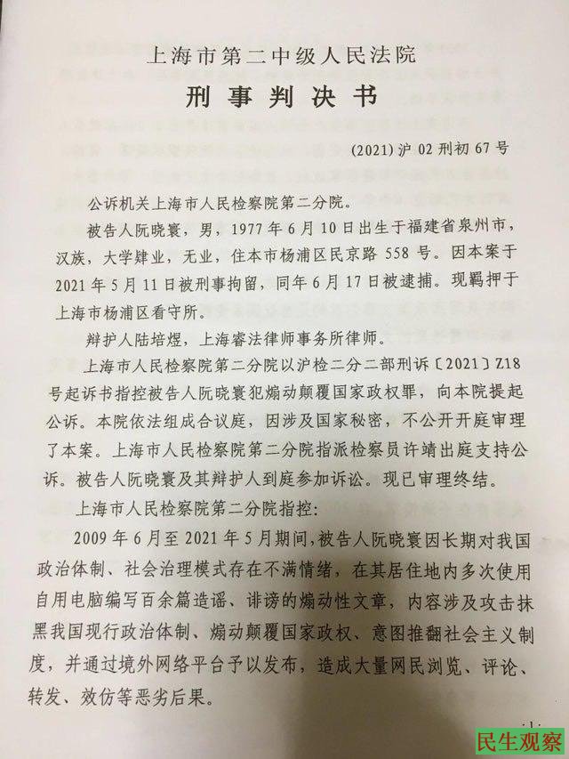 据悉,“编程随想”本名阮晓寰,是2008年北京奥运会的信息安全系统总工程师。2021年5月10日,阮晓寰被警方带走,在被关押近2年后于2023年2月10日公开宣判,一审被以煽动颠覆国家政权罪判刑7年,其妻贝女士在替丈夫上诉过程中遭遇警方的施压。