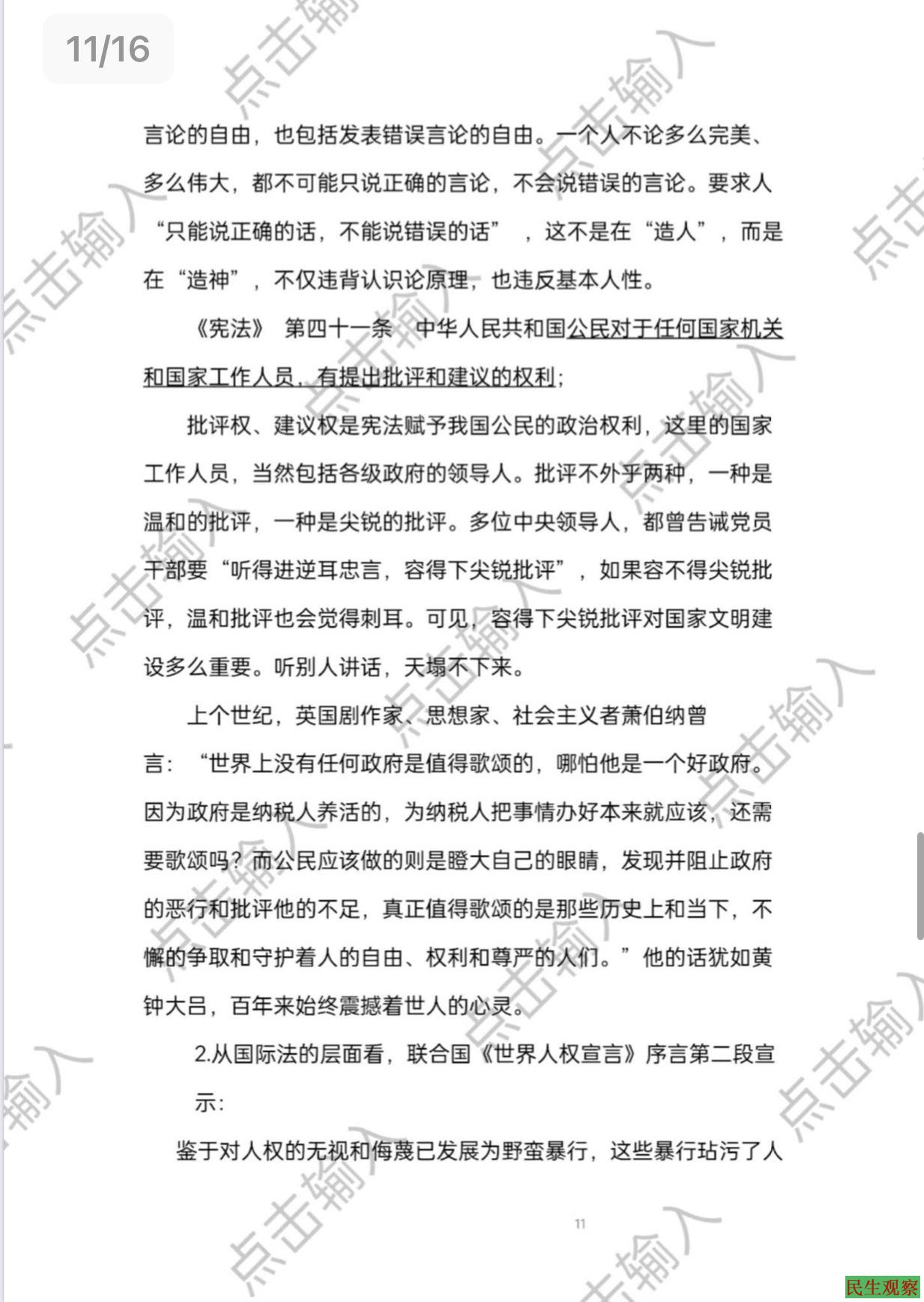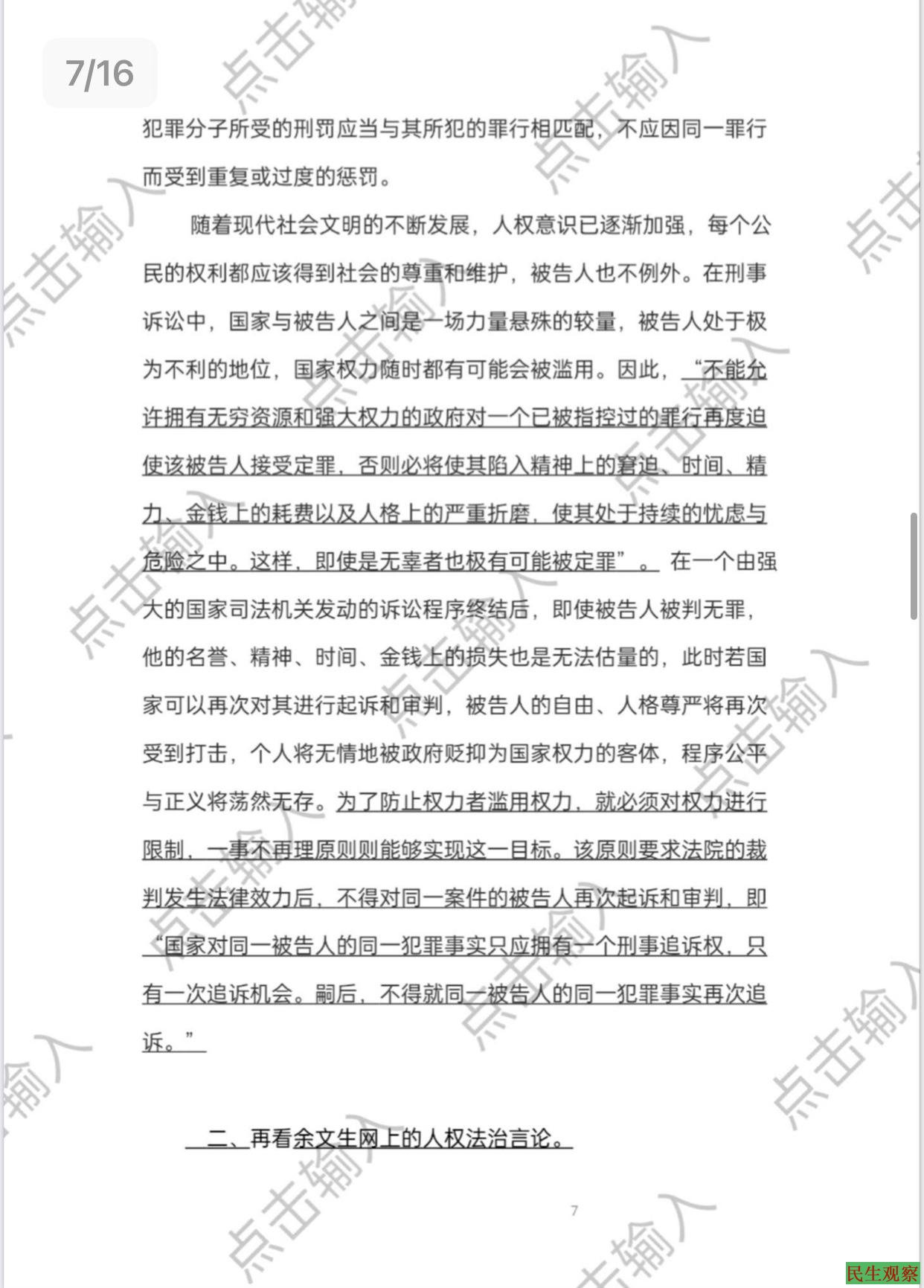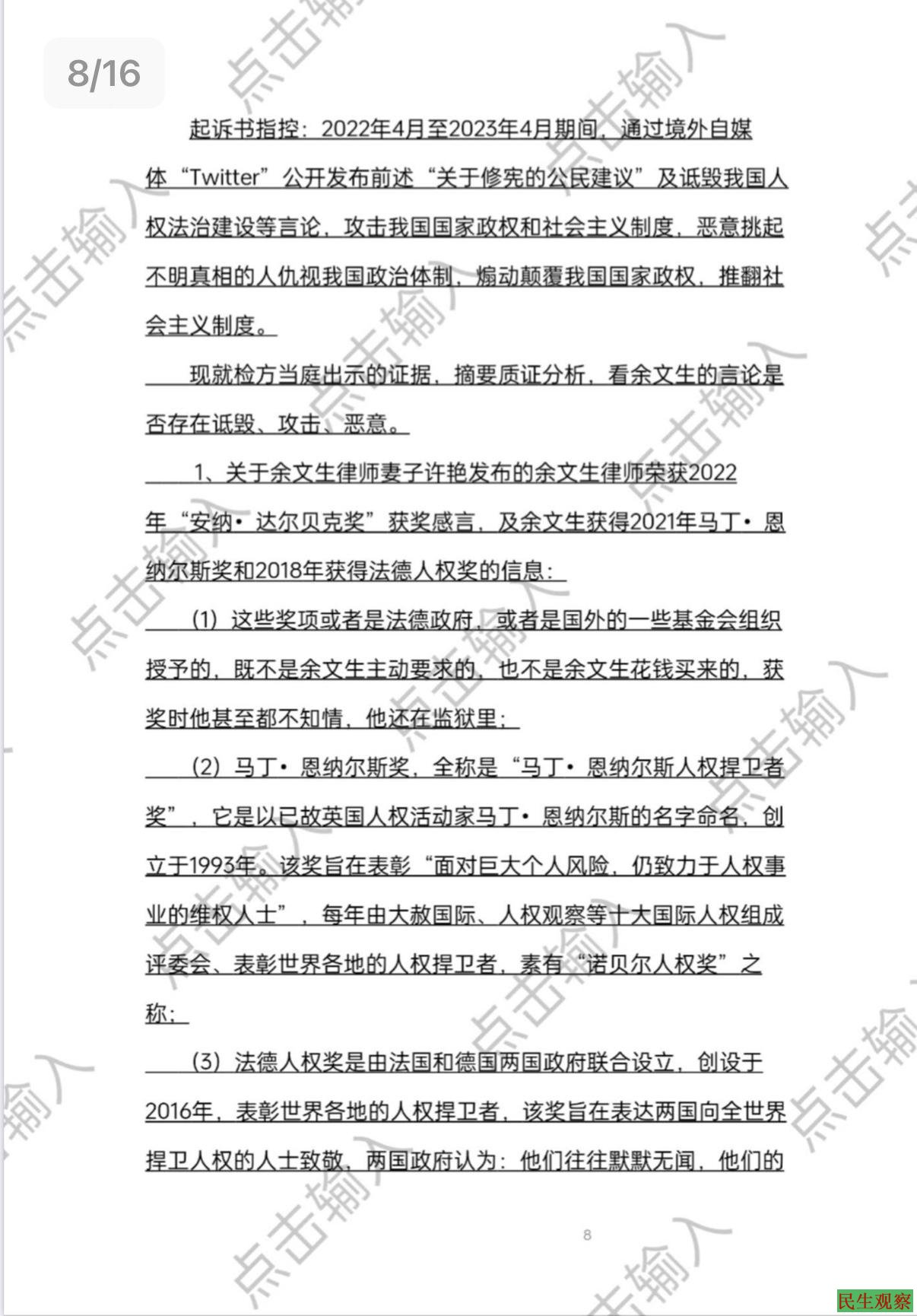 【民生观察2024年8月30日消息】广州律成定邦律师事务所,葛文秀律师认为:苏州市人民检察院,指控被告人余文生先生犯有煽动颠覆国家政权罪完全不能成立,余文生先生是完全无辜的,应依法宣告无罪。