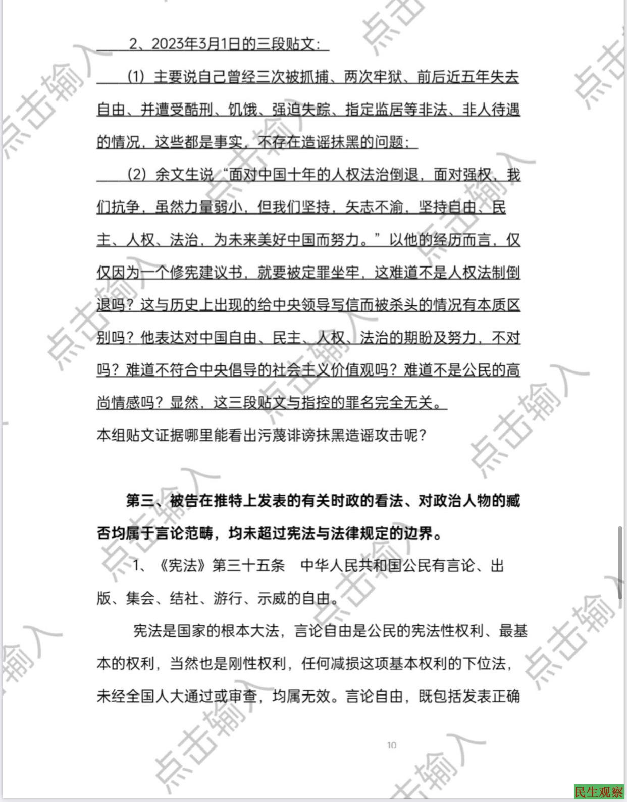 余文生涉嫌煽动颠覆国家政权案一审辩护词