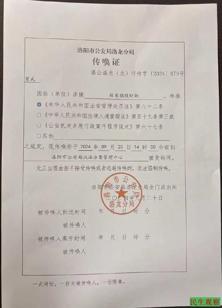 据吕律师说:“我是湖南的吕方芝律师,我的同仁曾武律师9月20下午被洛阳市龙门派出所带走,理由是故意损坏财物。