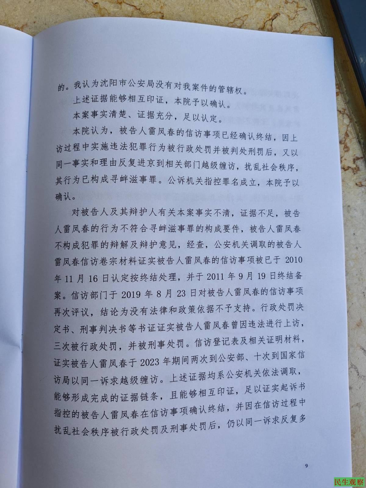 沈阳雷凤春被寻衅滋事案宣判有期徒刑三年三个月