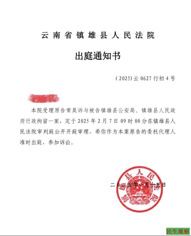 常昊传道不服镇雄县政保大队的行政处罚,向政府提起行政复议,司法局维持原行政处罚,后常昊传道又向法院提起行政诉讼,法院受理后案件原计划于2025年2月7日公开开庭审理。
